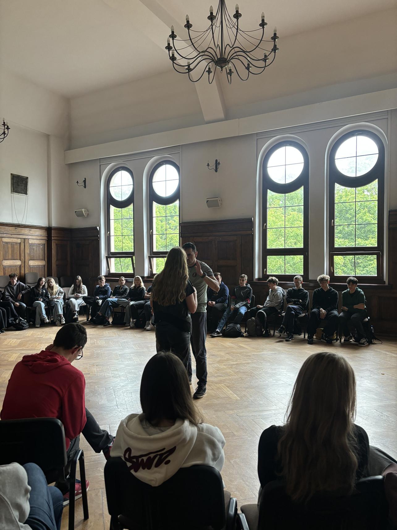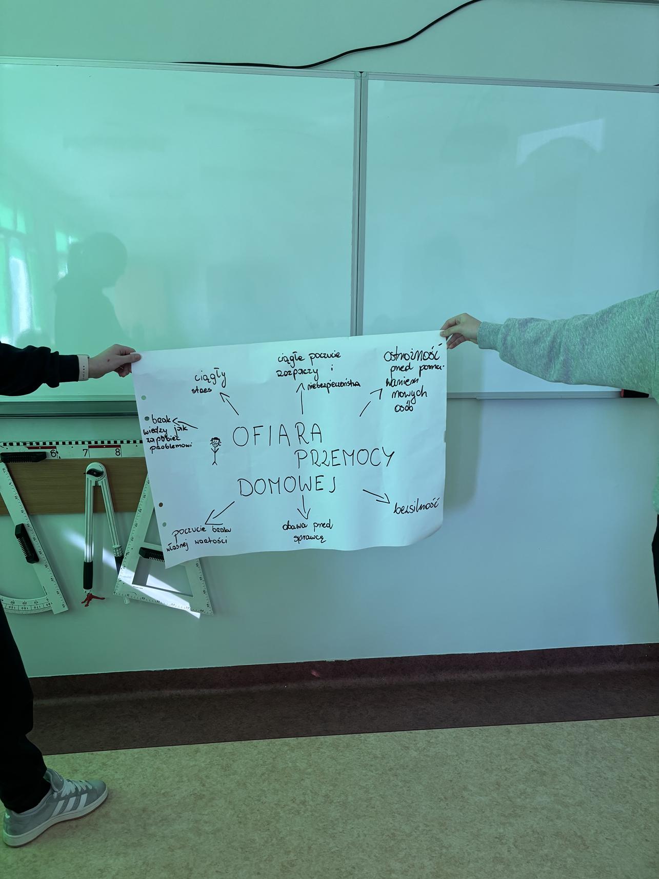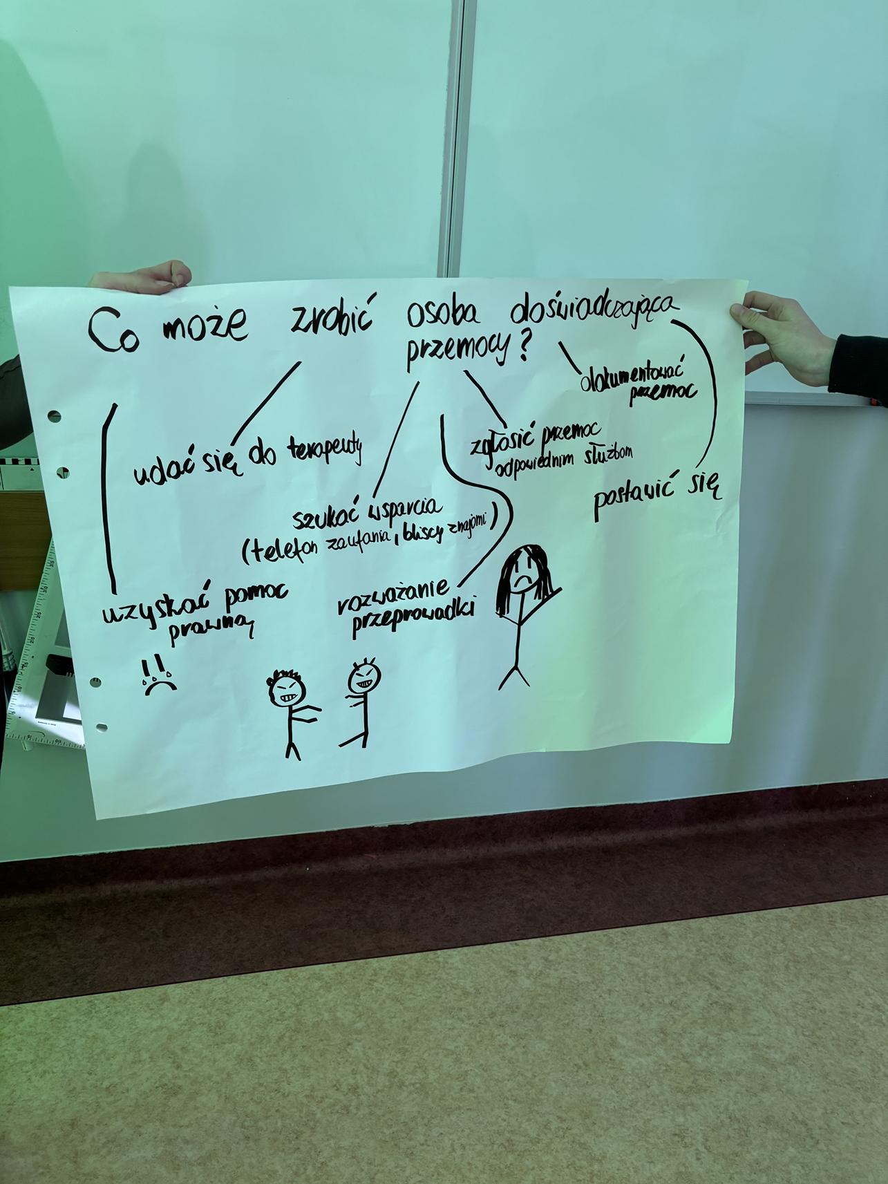 Pierwsze odbywało się z terapeutą Sekcji Profilaktyki Uzależnień Miejskiego Ośrodka Pomocy Społecznej. Na spotkaniu przekazano podstawowe informacje dotyczące zjawiska przemocy domowej w rodzinie z problemem uzależnień. Młodzież dowiedziała się również, jak bezpiecznie radzić sobie w sytuacji przemocy oraz jak ustrzec się przed krzywdzącymi związkami w przyszłości.