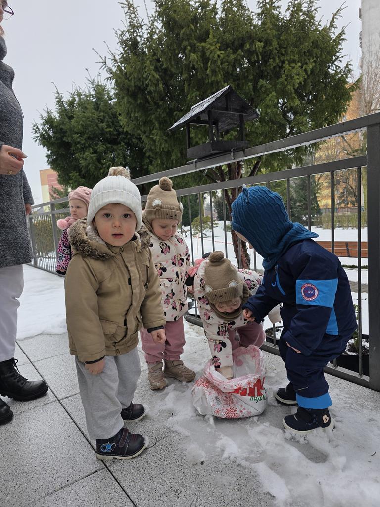 Maluszki, podczas zajęć zapoznały się z tematem dokarmiania ptaków. Dowiedziały się, iż zima to bardzo ciężki czas dla ptaków i dlatego należy im pomagać.Dziękujemy serdecznie Rodzicom za dostarczenie przysmaków do żłobkowych karmników.