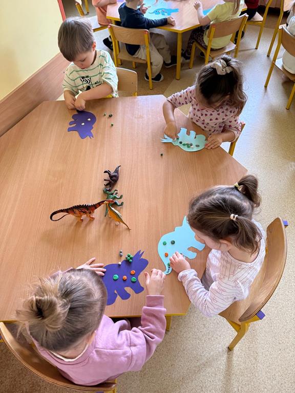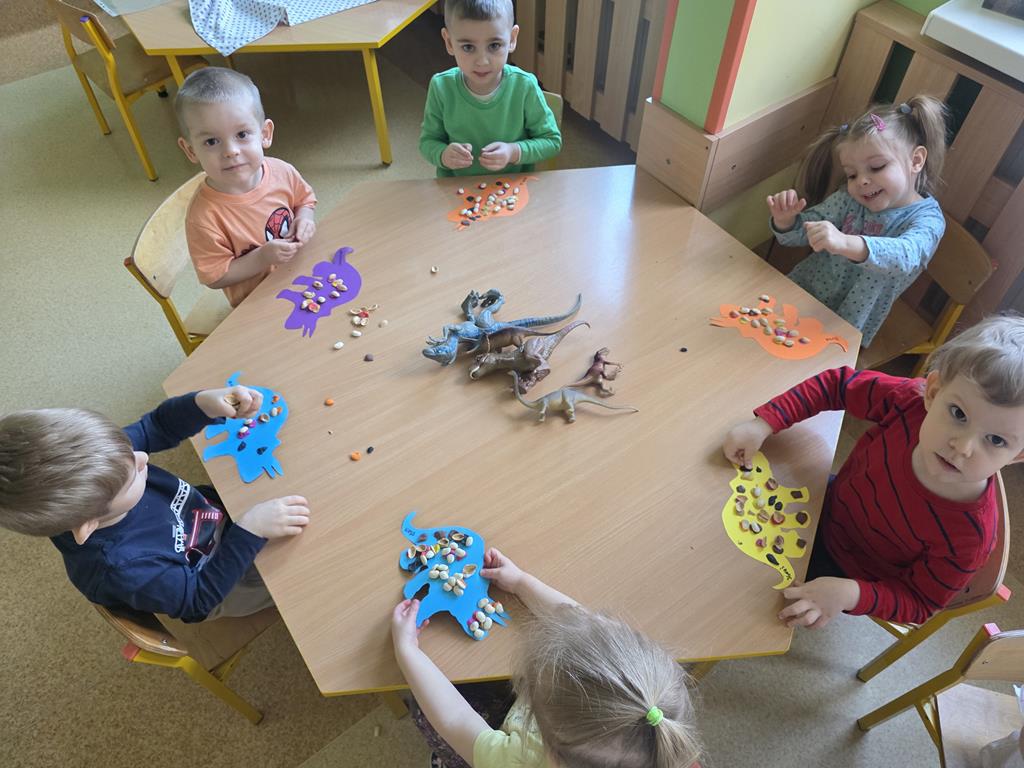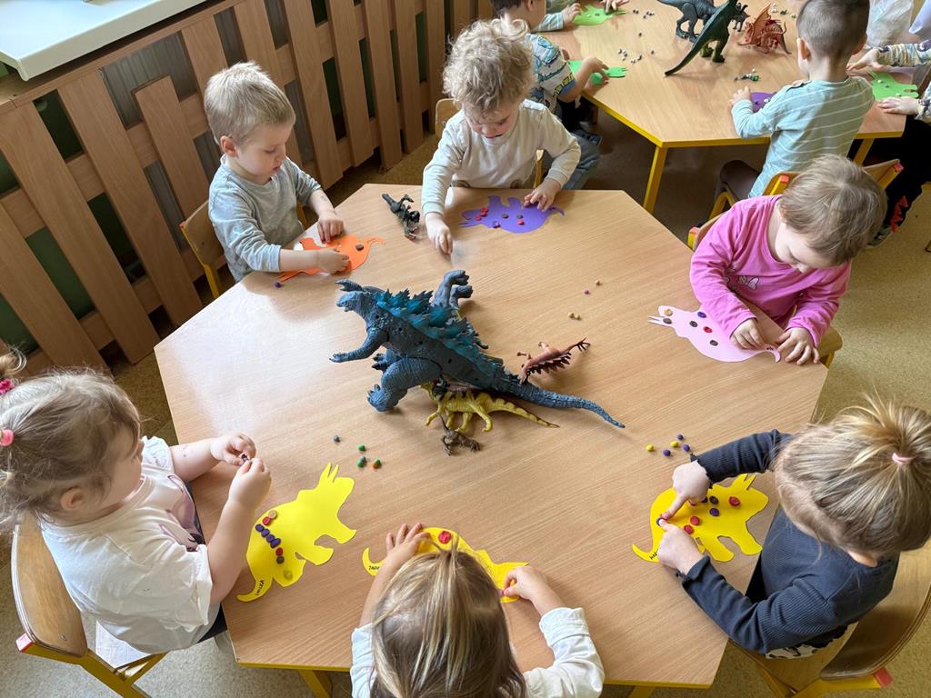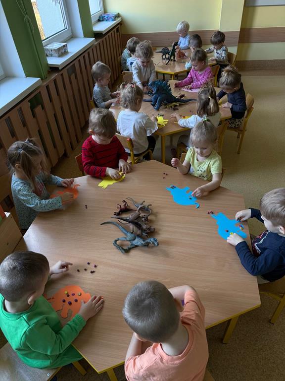 Dzień Dinozaura był okazją, by opowiedzieć dzieciom o dinozaurach, które kiedyś zamieszkiwały naszą planetę. Celem zajęć w tym dniu było poszerzenie słownictwa naszych dzieci, pobudzenie ich wyobraźni, rozwijanie ich spostrzegawczości i koordynacji ruchowej poprzez zabawę. Na zakończenie zajęć wszystkie dzieci wykonały piękne prace plastyczne.