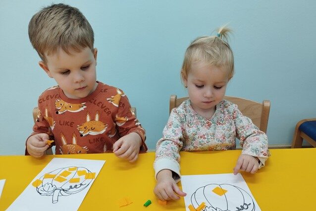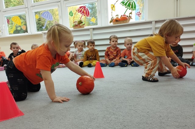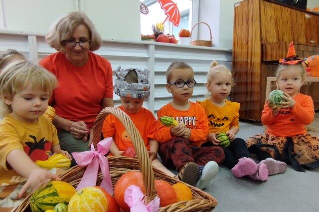 W tym roku maluszki z grupy “Krasnali” uroczyście świętowały Dzień Dyni. Dzieci poznały nowe warzywo, jego wielkość, kształt i kolor. Maluszki brały udział w zabawach ruchowych, tanecznych i konkursach związanych z dynią. W czasie zabaw plastycznych rozwijaliśmy u dzieci myślenie twórcze i kreatywność – maluszki z zaangażowaniem przyklejały kolorową bibułę na sylwetę warzywa.