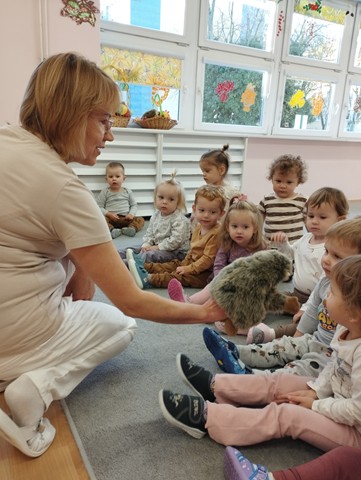 Zajęcia miały na celu poznanie sympatycznego zwierzątka jakim jest jeż, a różnorodne zabawy wprowadzały pozytywny, radosny nastrój wśród dzieci, wspomagały ich aktywność twórczą i samodzielność.