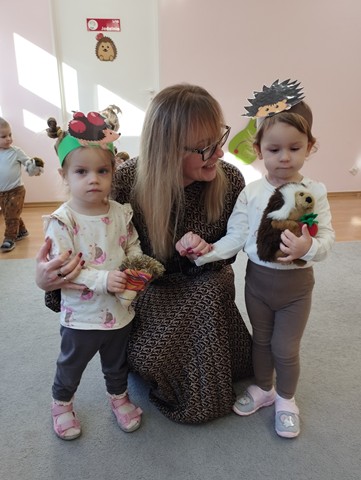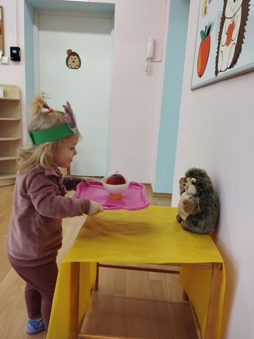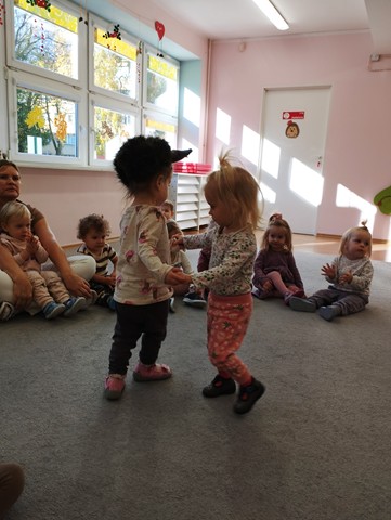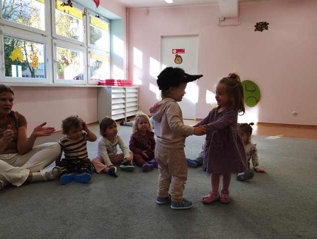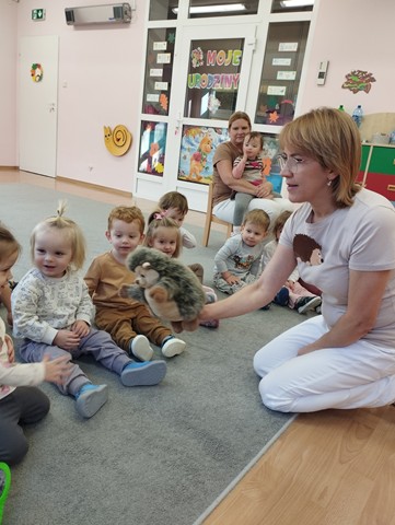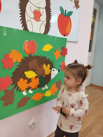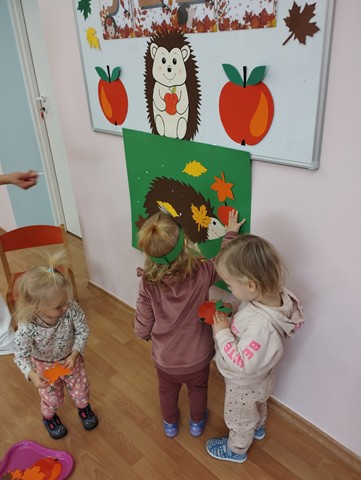 W tym dniu dzieci z grupy Muchomorków poznawały zwyczaje i wygląd kolczastego zwierzątka, częstowały go jabłuszkiem. Maluszki tańczyły do piosenek pt. „Idzie jeż”, „Jesienny jeż”, „Kolorowe listki”. Dzieci z zaciekawieniem oglądały teatrzyk o jeżu szukającym domku na zimę oraz brały udział w wyklejaniu kolorowymi listkami obrazka z sylwetą zwierzątka. Dużo radości sprawił dzieciom taniec w parach przy piosence pt. „Taniec z jeżem”.