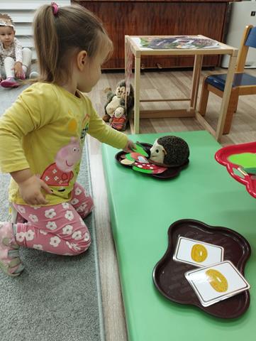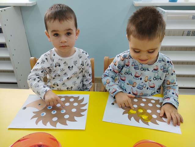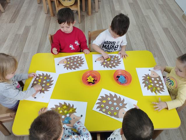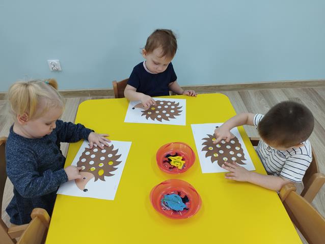 W czasie zabaw plastycznych rozwijaliśmy u dzieci wyobraźnię i twórczą inicjatywę – dzieci wykonały indywidualne prace kolorując postać jeża farbami.