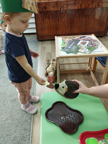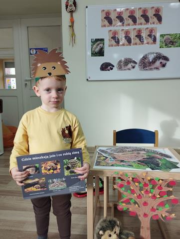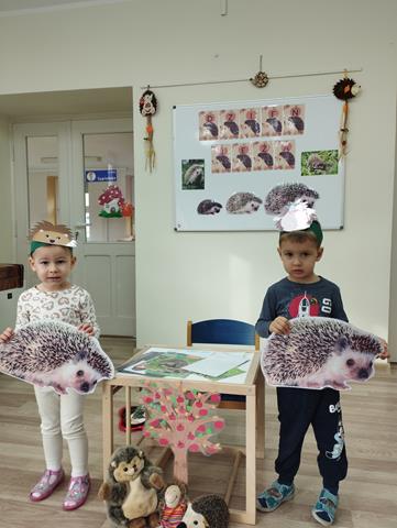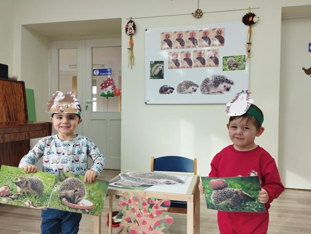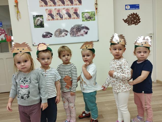 Dzieci z grupy Krasnali uroczyście obchodziły „Dzień Jeża”.Maluszki brały udział w zajęciach tematycznych, podczas których zapoznały się z wyglądem jeża, dowiedziały się czym żywi się i jakie ma zwyczaje. Przez cały dzień towarzyszyły dzieciom zabawy taneczno-ruchowe do piosenek pt. „Idzie jeż”, “ Mały jeż” oraz zabawa edukacyjna „Śniadanko dla jeża”- maluszki segregowały obrazki, na których widniały produkty zdrowe i niezdrowe dla jeża.