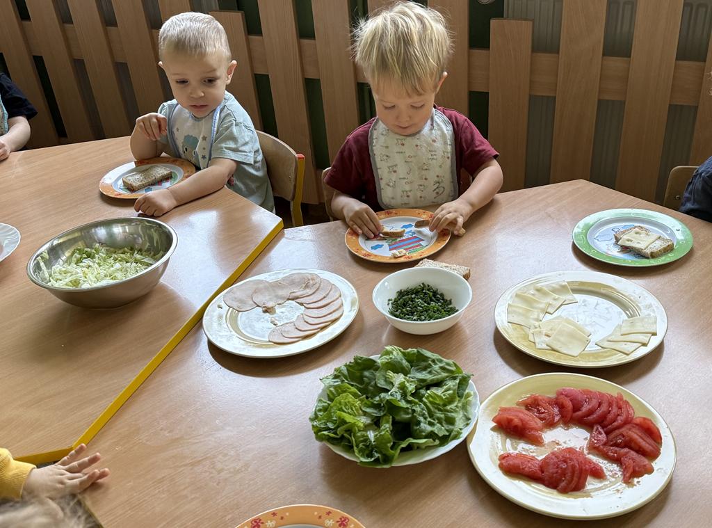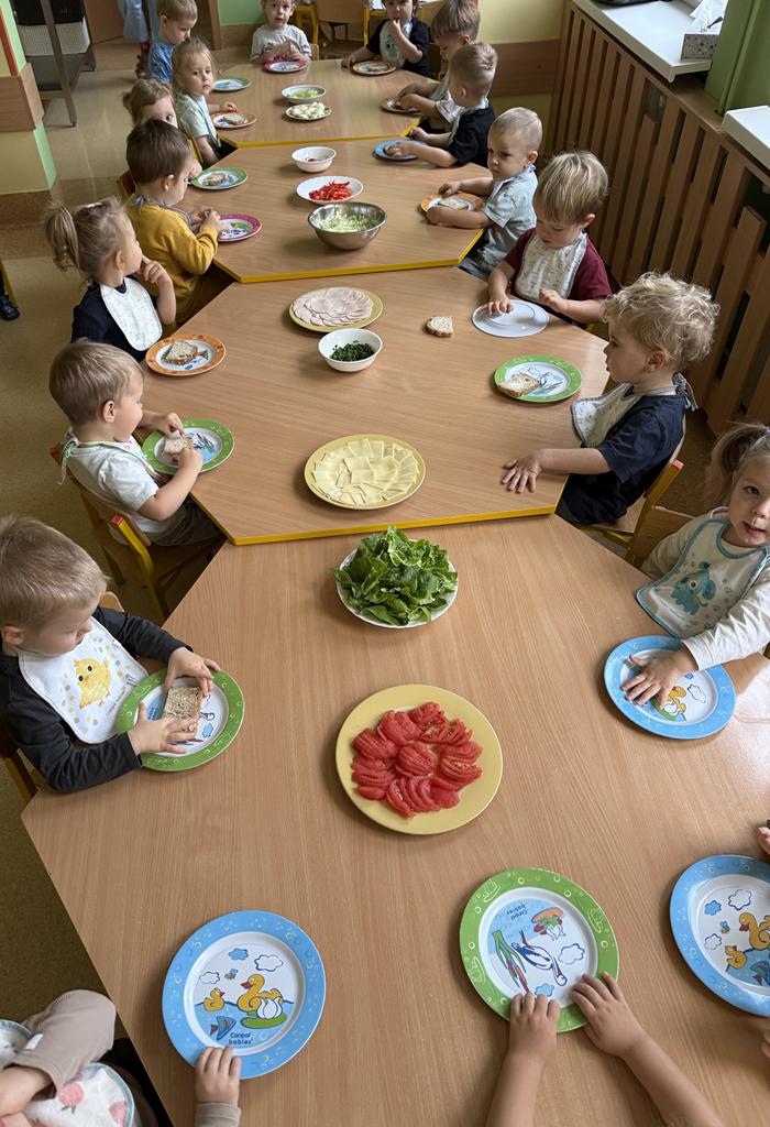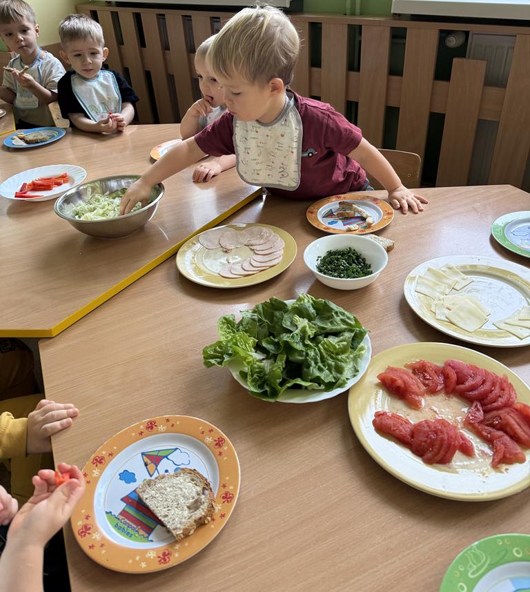 Kromka chleba, pół bułeczki,będą pyszne kanapeczki!