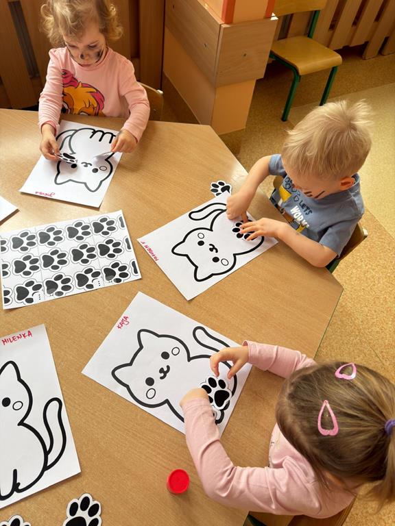 Dzień Kota to radosne święto integrujące dzieci do wspólnej i ciekawej zabawy. Tego dnia nasze maluszki przyglądały się bliżej tym tajemniczym zwierzakom, poznały ich zwyczaje, potrzeby oraz dowiedziały się w jaki sposób należ się nimi opiekować. Podczas zabaw ruchowych naśladowały miauczenie oraz poruszały się po sali jak kotki. Wykonały też prace plastyczne przedstawiające te interesujące zwierzę. Zajęcia sprawiły dzieciom dużo radości i pozwoliły w ciekawy sposób poznać świat zwierząt.