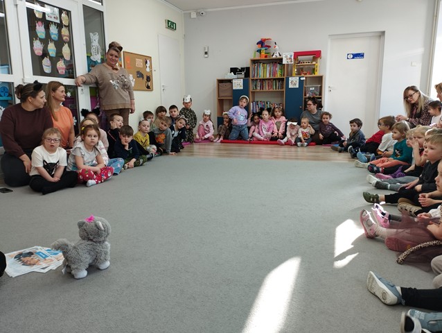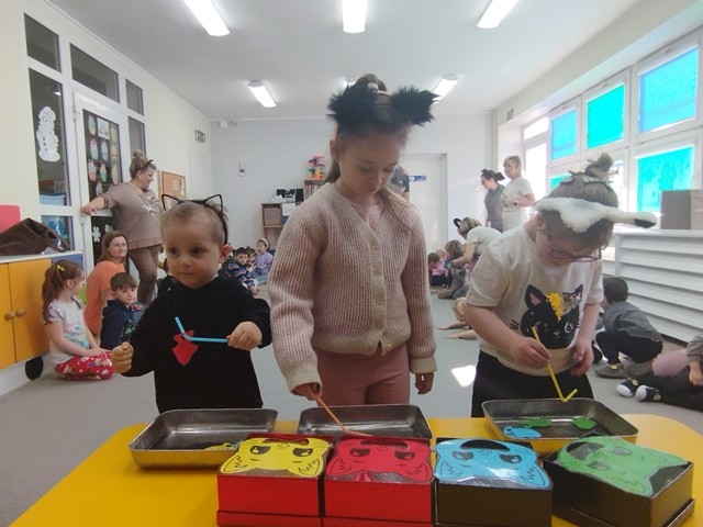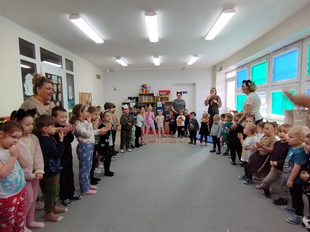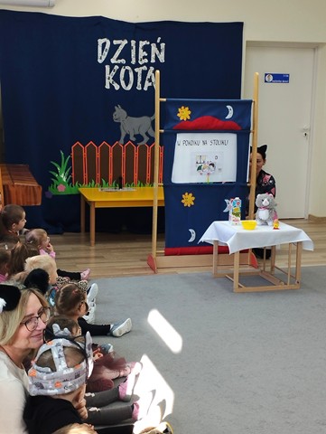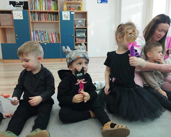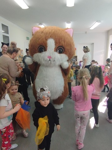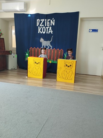W grupie „Krasnali” bardzo uroczyście obchodziliśmy to nietypowe święto. Z tej okazji zaprosiliśmy do naszego żłobka dzieci z Przedszkola Nr 9. Spotkanie rozpoczęło się wspólną piosenką pt. „My jesteśmy kotki dwa” oraz teatrzykiem „W pokoiku na stoliku”. Nie zabrakło również wesołych „kocich zabaw”, tańców, zagadek oraz zawodów, podczas których dzieci wykazały się dużym sprytem i pomysłowością. Niespodzianką dla maluszków okazał się duży i bardzo miły kotek, dla którego dzieci zaśpiewały i zatańczyły do piosenki pt. „Kotek puszek”. Spotkanie zakończyliśmy wspólną pracą plastyczną, której motywem przewodnim był kot.