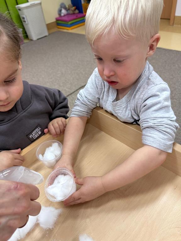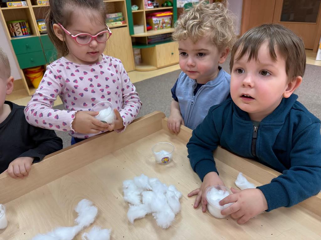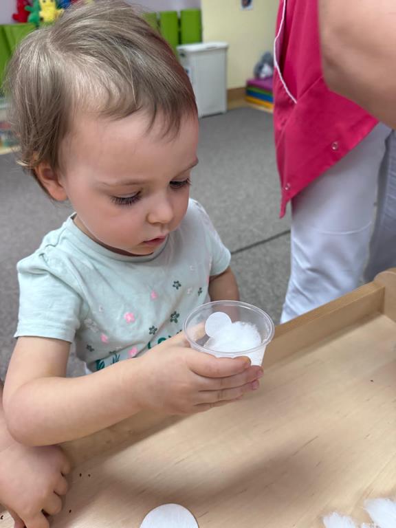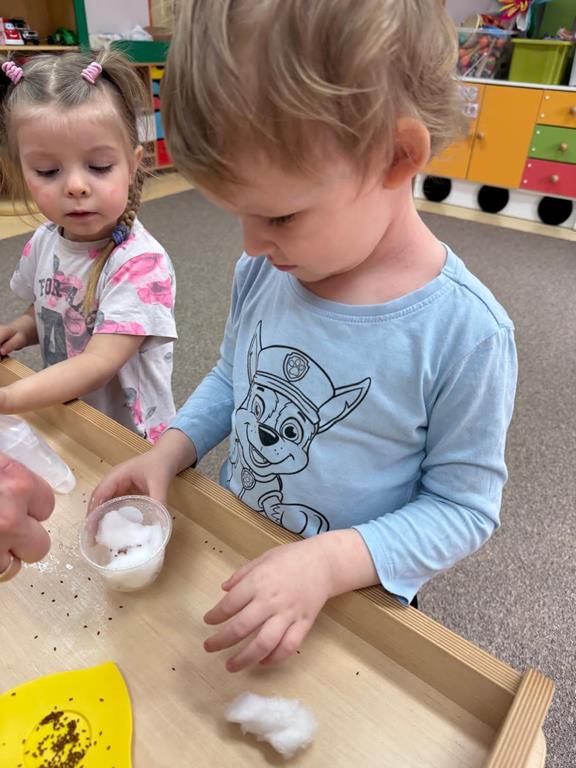 Ta wiosenna aktywność miała sensoryczny charakter pozwalając na dotykanie rożnych faktur wspierając rozwój poznawczy naszych maluszków.