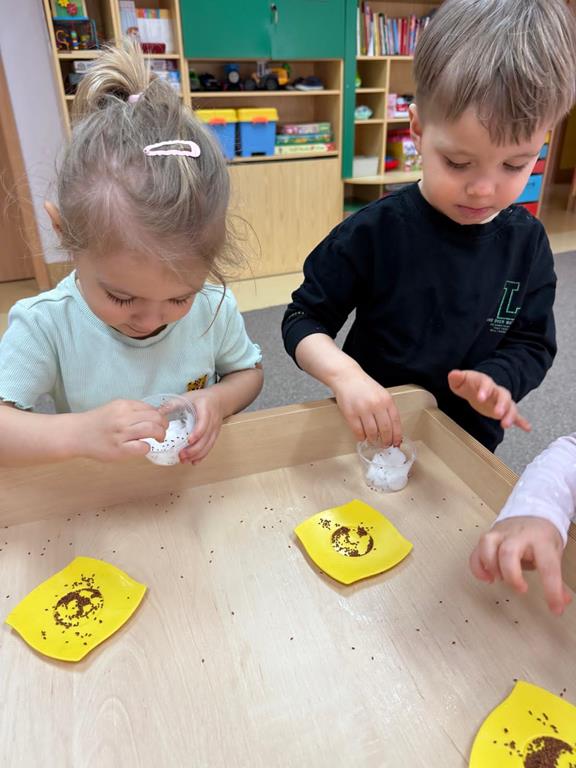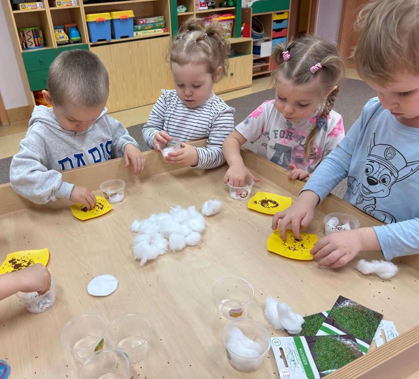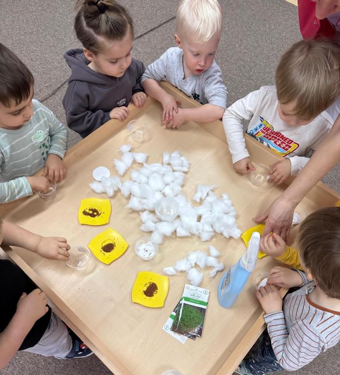 Kolejną atrakcja w ostatnich dniach było sadzenie rzeżuchy w ramach wprowadzenia naszych dzieci w świat przyrody, rozwijania motoryki małej oraz obserwacji wzrostu roślin.