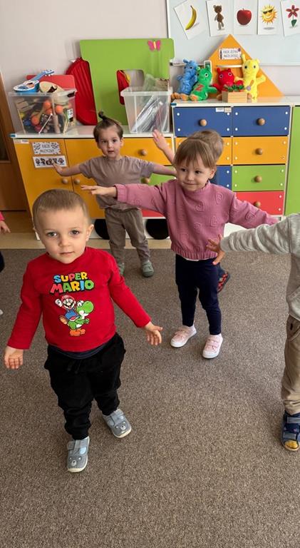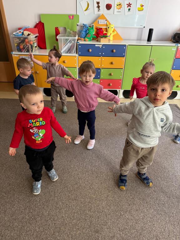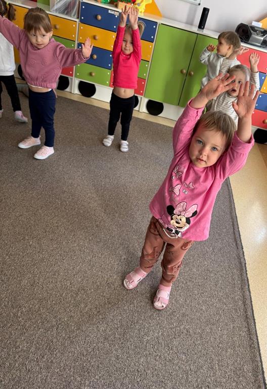 Dzieci rozpoczęły dzień od krótkiej rozgrzewki przy muzyce. Wykonywały proste ćwiczenia, takie jak podskoki, krążenia ramion, skłony oraz marsz w miejscu.