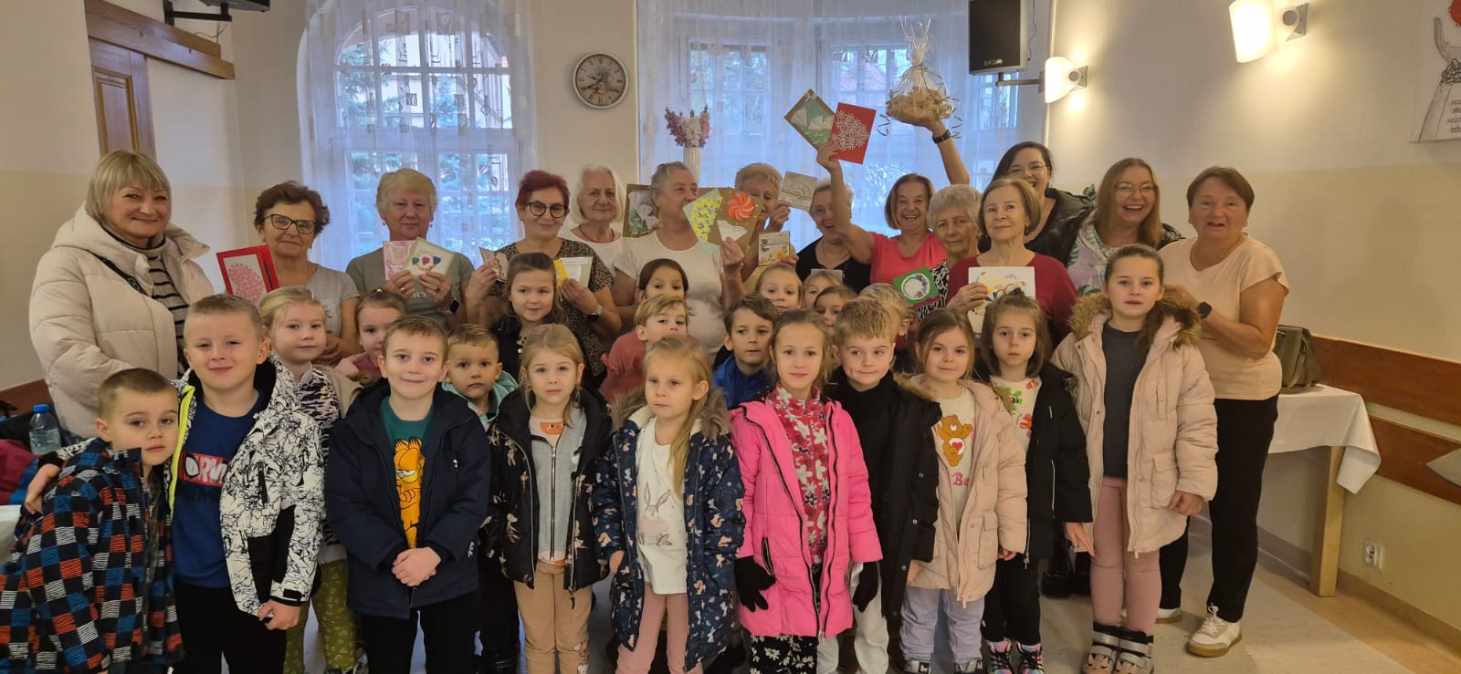 Bardzo dziękujemy milusińskim oraz przemiłej kadrze z Przedszkola Miejskiego nr 1 za przepiękne, wykonane z sercem laurki z życzeniami dla seniorów oraz słodką niespodziankę.