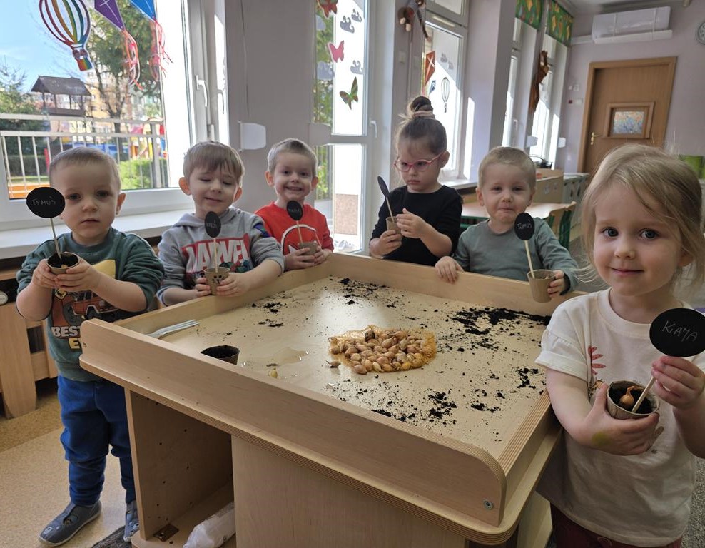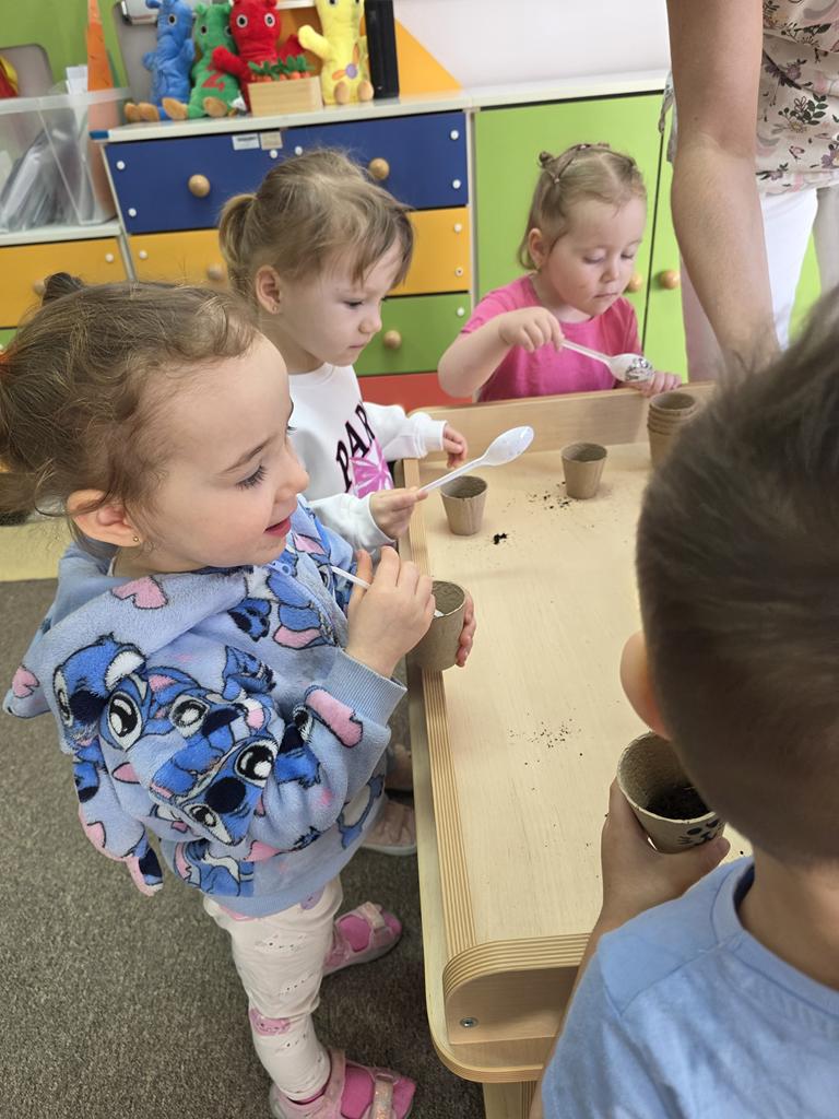 W ramach codziennych aktywności Muchomorki wzięły udział w zajęciach przyrodniczych, których celem było poznanie podstaw wzrostu roślin.