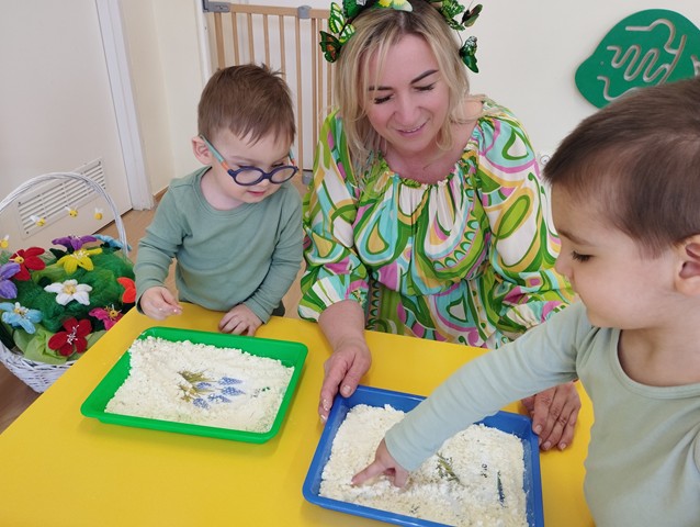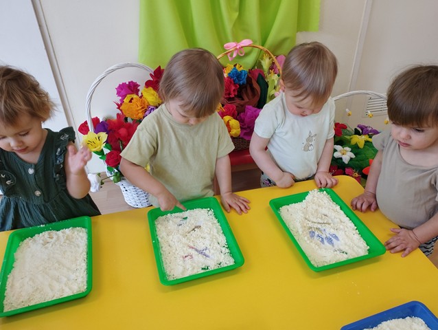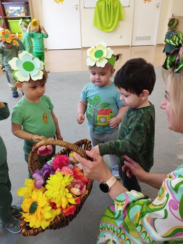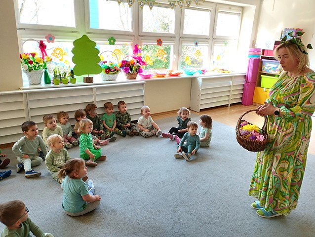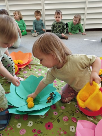 Maluszki z grupy Kaczuszek z zaciekawieniem powitały nową porę roku i z uśmiechem na twarzy zbierały kwiatki, które przyniosła Pani Wiosna. Dzieci na podstawie obrazków uczyły się rozpoznawać pierwsze oznaki wiosny, a segregowanie roślin pozwoliło im w naturalny sposób ćwiczyć koordynację wzrokowo-ruchową. Maluszki radośnie tańczyły do piosenki pt. ”Maszeruje wiosna”, z dumą prezentowały kolorowe kwiaty, które przygotowały w domu wspólnie z rodzicami. Dużo radości dostarczyły też zabawy sensoryczne – dzieci z przejęciem „zbierały nektar” i z ogromnym zaciekawieniem odgarniały resztki zimowego śniegu, by odnaleźć ukryte pod nim wiosenne pąki.