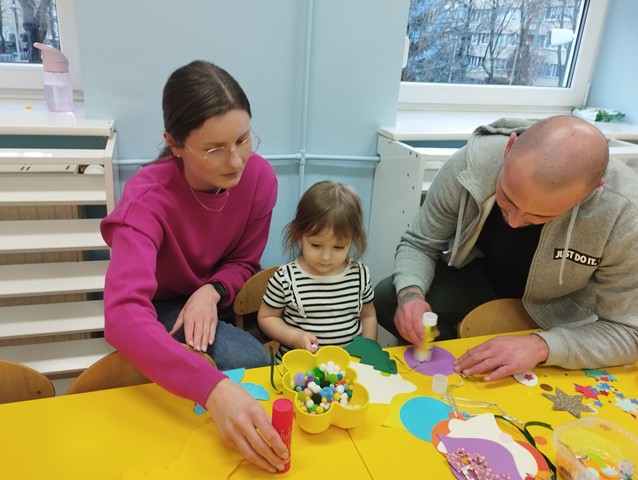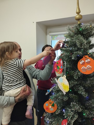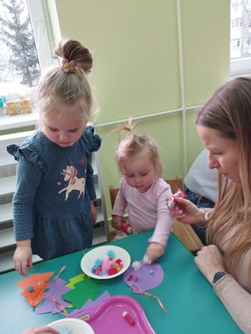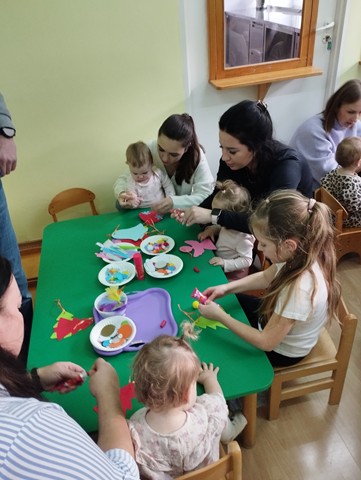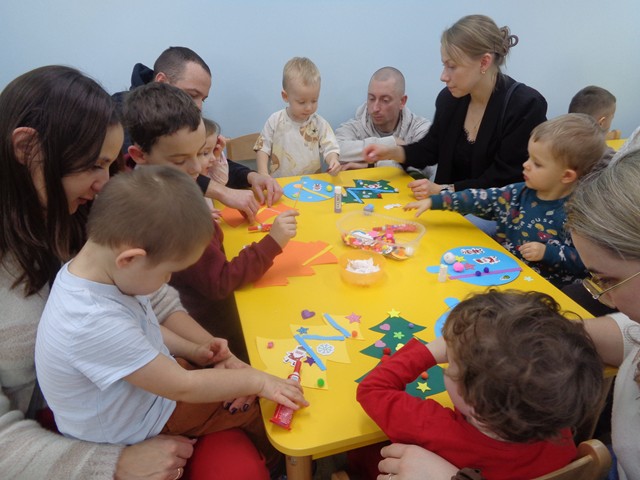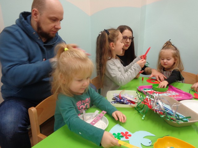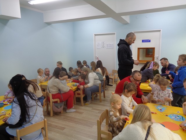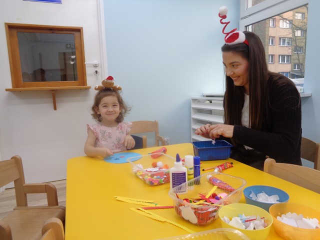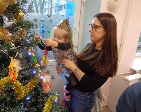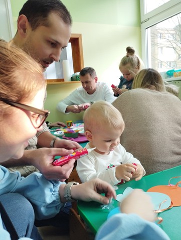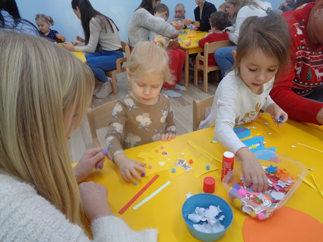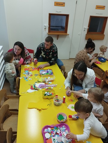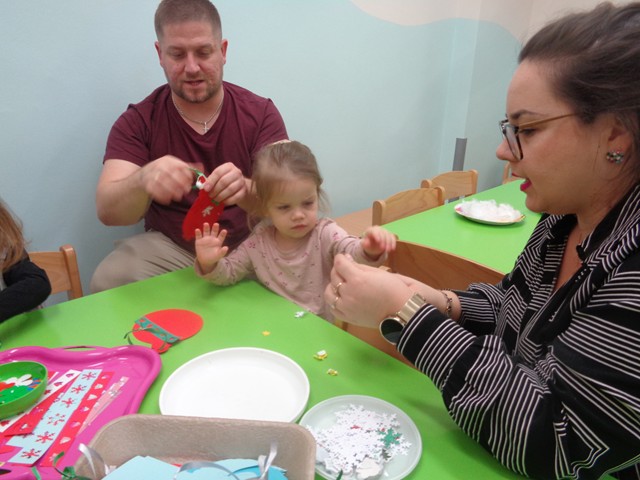 Wspólne wykonywanie ozdób choinkowych z rodzicami to w naszym żłobku już tradycja. Dzieci z pomocą dorosłych wyklejały kolorowe bombki, aniołki i choinki. Spotkanie było doskonałą okazją do zacieśniania więzi rodzinnych i rozwijania zdolności manualnych naszych maluszków, dostarczyło też wszystkim uczestnikom dużo radości i dobrej zabawy. W czasie zajęć powstały piękne dekoracje, którymi ozdobiliśmy świąteczne drzewka. Rodzicom za udział w zajęciach SERDECZNIE DZIĘKUJEMY!