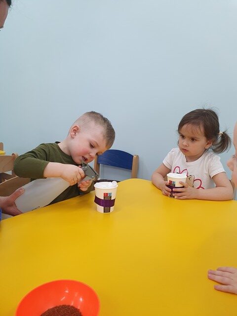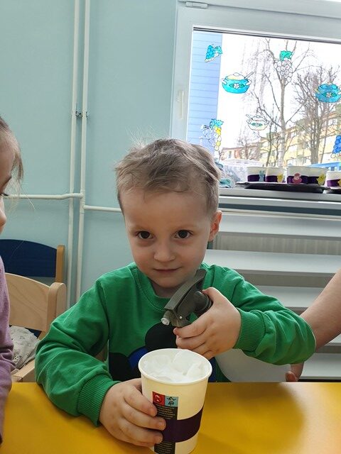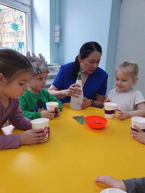 W ramach przygotowań do Świąt Wielkanocnych dzieci z grupy Krasnali uczestniczyły w zajęciach przyrodniczo-sensorycznych polegających na sianiu rzeżuchy. Głównym celem zabawy była stymulacja receptorów dotyku poprzez kontakt