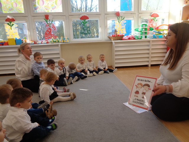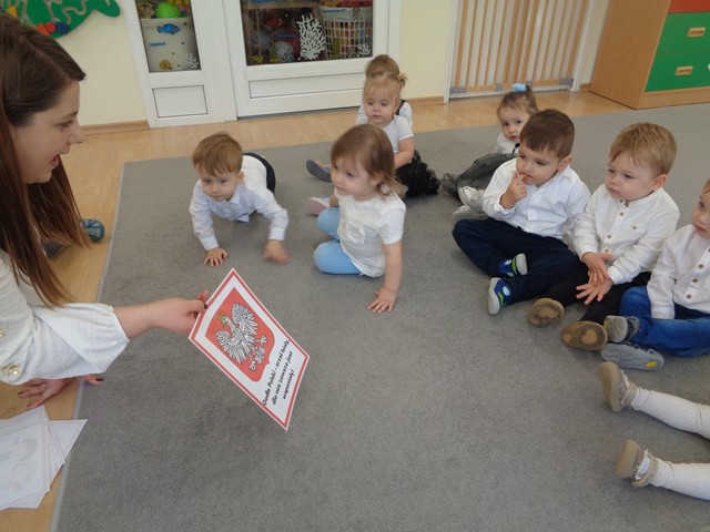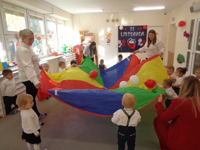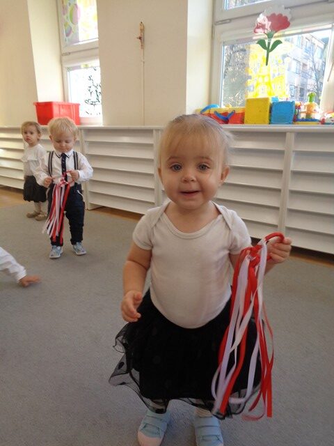 Z okazji Święta Niepodległości dzieci z grupy Kaczuszek poznały symbole narodowe – flagę, godło i hymn. Maluszki tańczyły do piosenek “Polska to mój kraj”, „Co to jest niepodległość?”, wymachując przy tym biało-czerwonymi wstążeczkami. Dzieci wykonały wspólną pracę plastyczną: biało-czerwoną flagę oraz ozdabiały białe serce czerwonymi piłeczkami, tworząc wspaniały symbol miłości do ojczyzny.