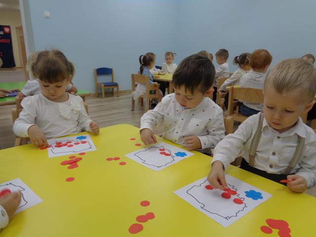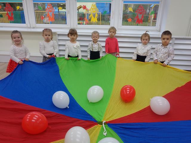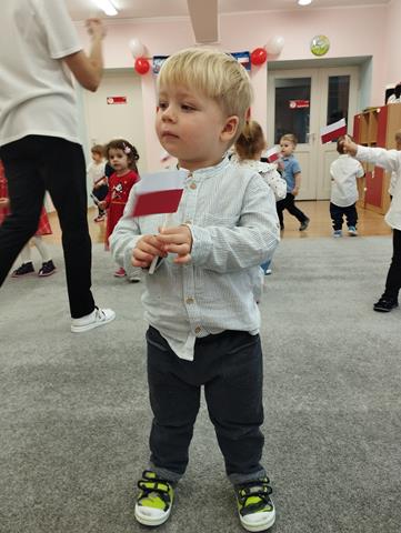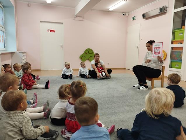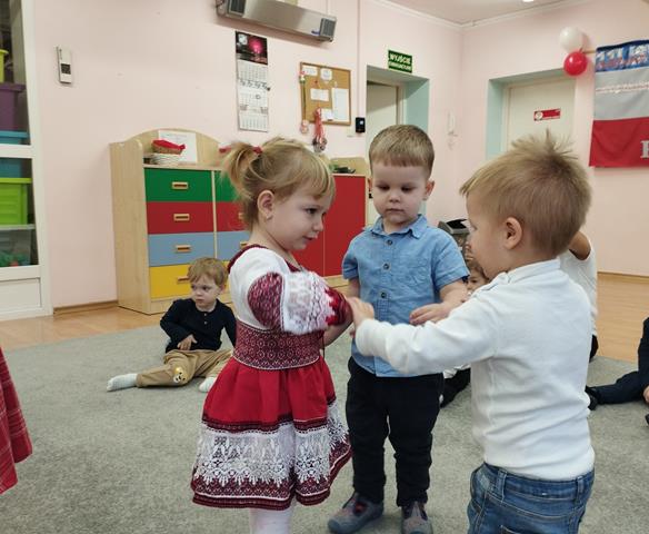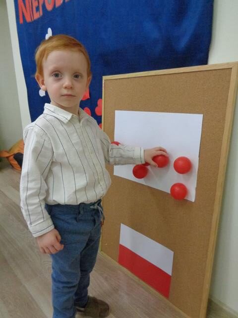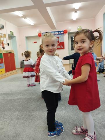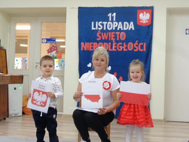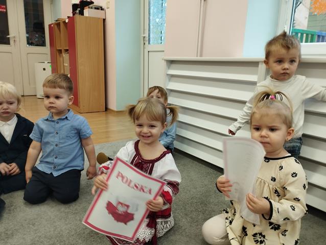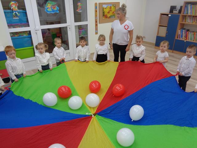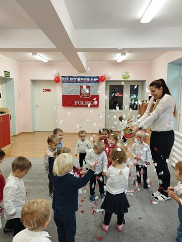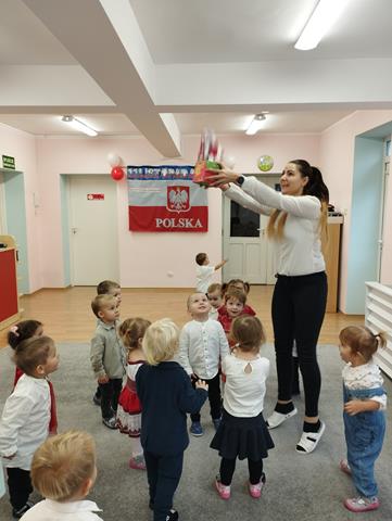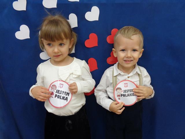 Z tej okazji w starszych grupach odbyły się zajęcia zabawowe mające na celu kształtowanie miłości i przywiązania do kraju ojczystego, jego kultury i tradycji. Dzieci poznały symbole narodowe: flagę i godło, a także wysłuchały wiersza: „Kto Ty jesteś?”. Maluszki tańczyły i maszerowały do piosenek: „Jestem Polką i Polakiem”, „Kocham Polskę”, „Jest takie miejsce- Polska”wymachując przy tym biało-czerwonymi flagami. Dzieci wykonały również piękne prace plastyczne.