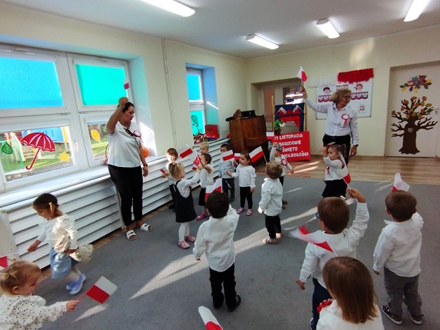 Uroczystość z okazji Narodowego Święta Niepodległości miała na celu rozwijanie wśród dzieci poczucia przynależności narodowej, pielęgnowanie polskiej kultury i tradycji.