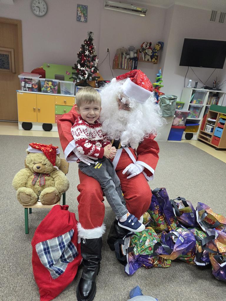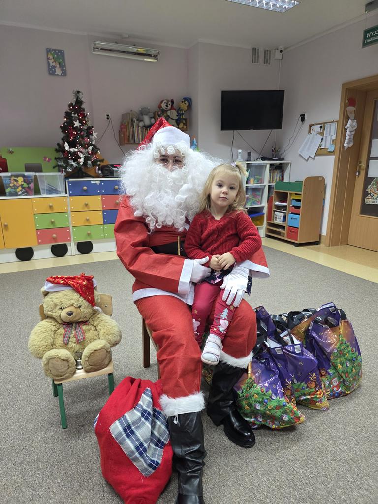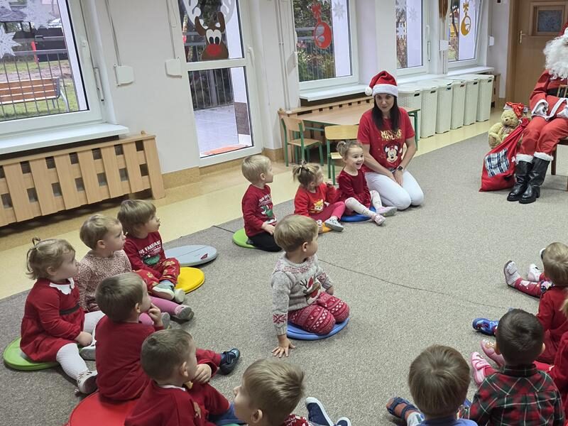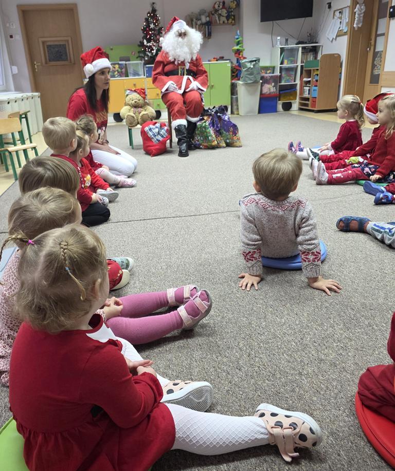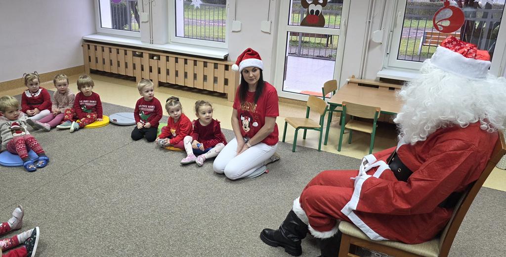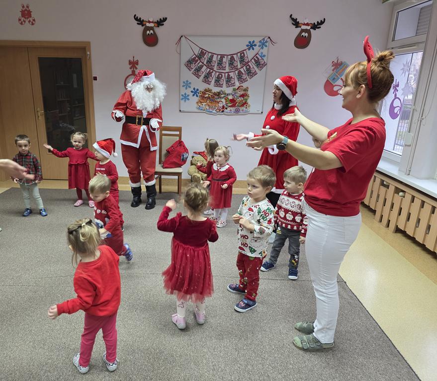 W ten niezwykły dzień, jak każdego roku już od samego rana dzieci z gr. III „Muchomorki” nasłuchiwały kroków i dźwięku dzwonka Świętego Mikołaja. Pomimo braku śniegu, wyczekiwany Gość nie zawiódł dzieci. Przybył do żłobka i obdarował wszystkie dzieci prezentami, a maluszki zaprosiły gościa do wspólnej tanecznej zabawy. Dziękujemy Święty Mikołaju i zapraszamy za rok.