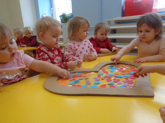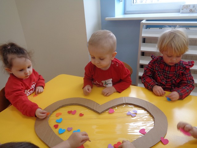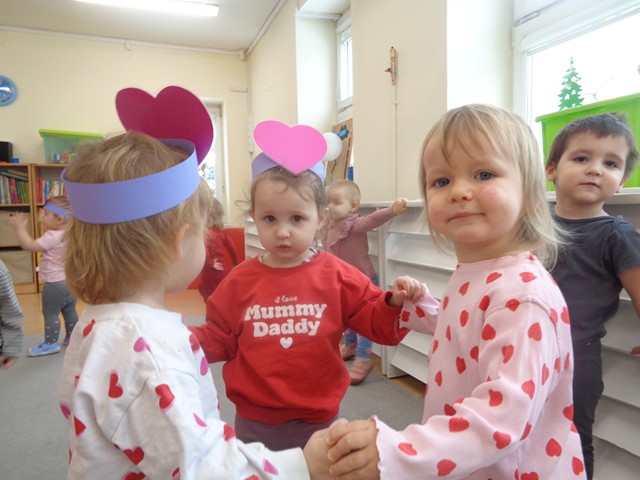 Dzieci z grupy „Kaczuszki” wesoło świętowały Walentynki. Maluszki wzięły udział w specjalnie przygotowanych zabawach muzycznych, ruchowych oraz plastycznych. Radosnej atmosferze towarzyszyły walentynkowe akcenty w formie kolorowych serduszek. Celem zabaw było budowanie bliskości, życzliwości i empatii u dzieci oraz rozwijanie umiejętności okazywania uczuć poprzez uśmiech, przytulenie, miłe słowo.