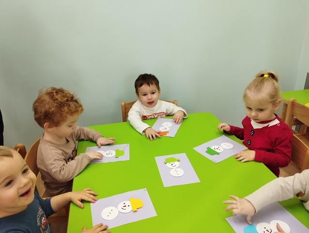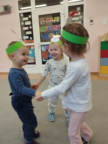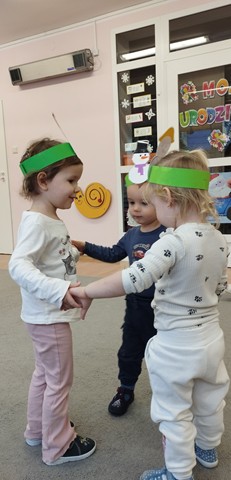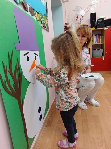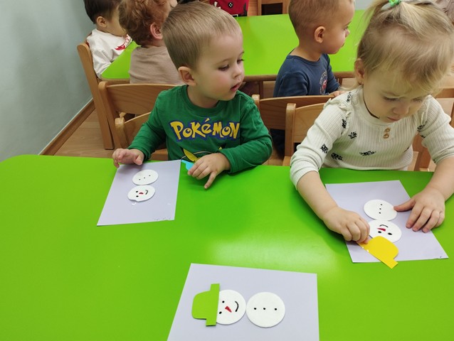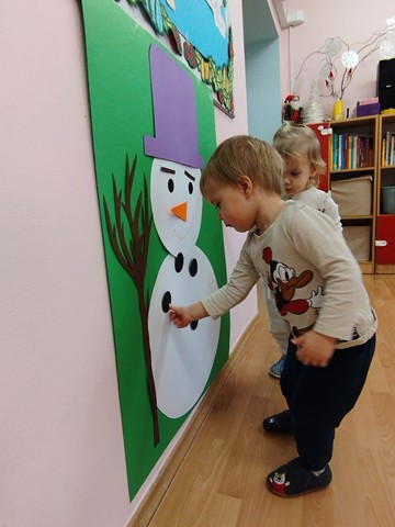 Nasze wspaniałe „Muchomorki” miały okazję uczestniczyć w interesujących, zimowych zajęciach pt. „Bałwankowe zabawy”. Dzieci z zaciekawieniem wysłuchały wierszyka o „Śniegowym bałwanku” i z radością doklejały brakujące elementy na plakacie. Wszyscy w wielkim skupieniu słuchali paluszkowej piosenki o bałwankowej rodzinie. Maluszki dały się ponieść zimowej atmosferze i radośnie tańczyły w specjalnych zaprzęgach, a także kręciły się w kółeczkach przy dźwiękach „Bałwankowej rodziny”. Uwagę małych odkrywców przykuła również opowieść obrazkowa o „Dziesięciu bałwankach”. To był bardzo radosny i twórczy dzień.