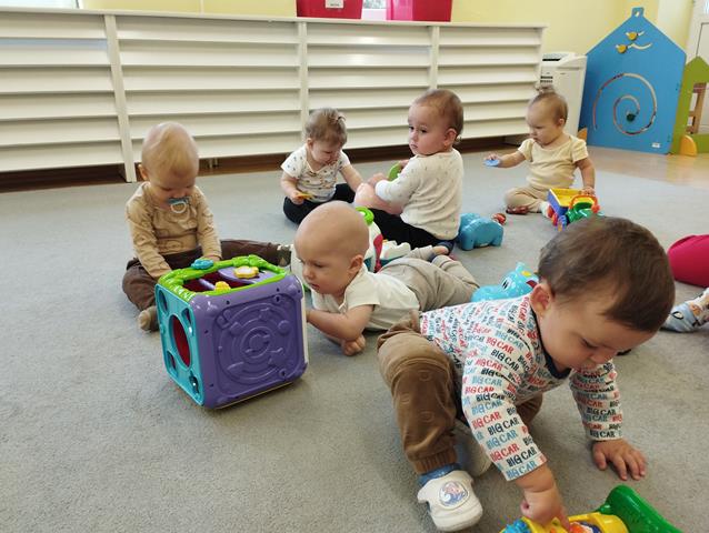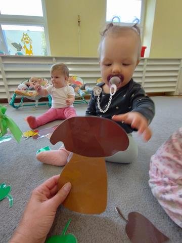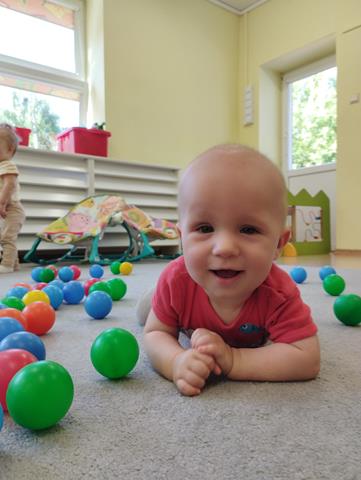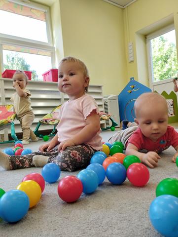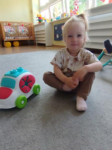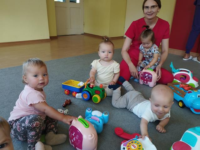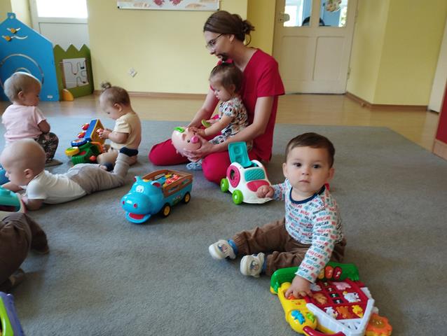 W czasie pierwszych dni w żłobku maluszki z grupy Raczków przyzwyczajały się do nowego otoczenia, poznawały panie opiekunki i siebie nawzajem. Z zaciekawieniem bawiły się kolorowymi zabawkami, oglądały bajeczki i słuchały nowych piosenek.