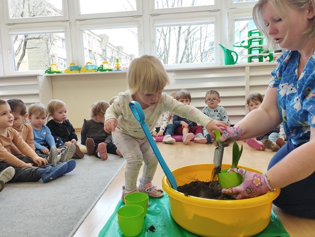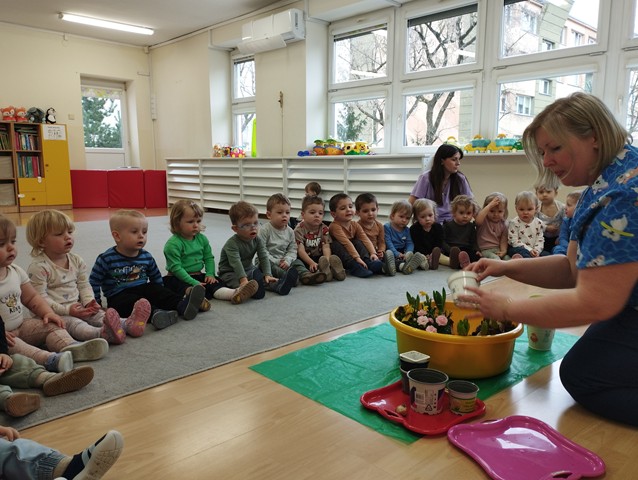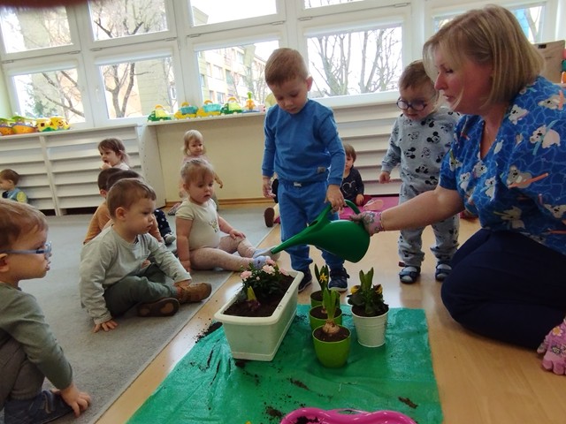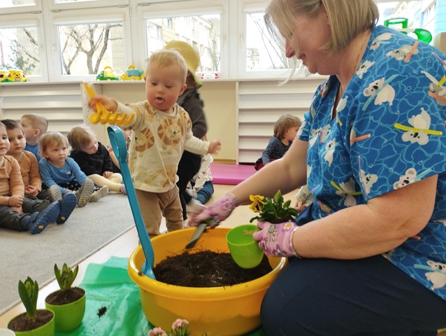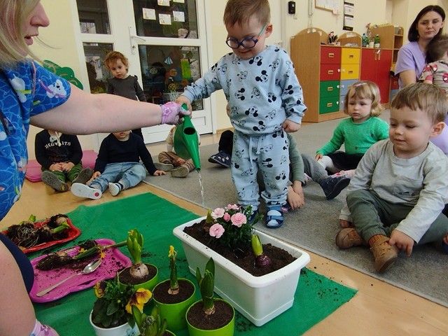 W czasie zajęć edukacyjnych w grupie Kaczuszek maluszki poznały nazwy wiosennych kwiatów. Dzieci z zaangażowaniem sadziły rośliny, ucząc się jak dbać o otaczającą nas przyrodę.