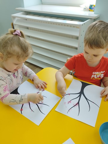 Na zakończenie zajęć dzieci wykonały pracę plastyczną pt. „Wiosenne drzewko”, które można podziwiać na wystawie. Dzień upłynął w miłej i przyjaznej atmosferze.