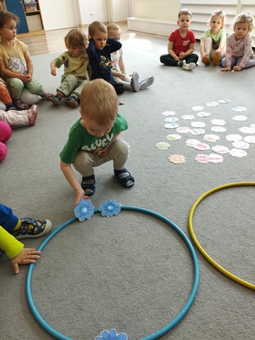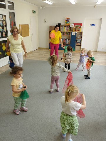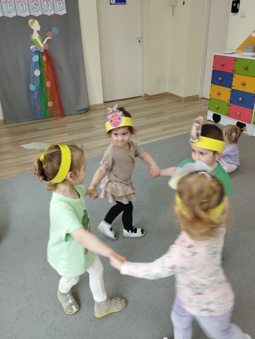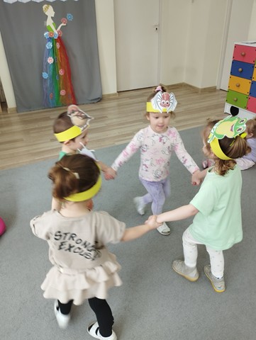 Tym wierszem dzieci z grupy Krasnali powitały Panią Wiosnę. Maluchy chętnie uczestniczyły w grach i zabawach nawiązujących do rozpoczynającej się właśnie pory roku.