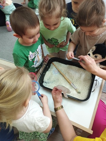 Najwięcej radości sprawiło dzieciom poszukiwanie wiosny w plenerze. Główną atrakcją było spotkanie z rodziną bocianów, która zamieszkała przy naszym żłobeczku.