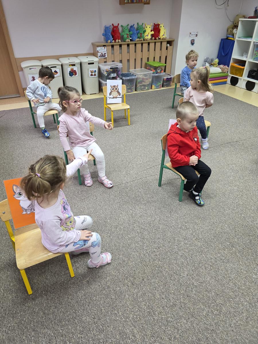 „Muchmorki” podczas ostatnich zajęć miały za zadanie wskazanie fotografii zwierząt, nazwanie ich oraz naśladowanie jego odgłosu. Zajęcia miały na celu rozwój słuchu i ćwiczenie koncentracji a przede wszystkim dobrą zabawę.