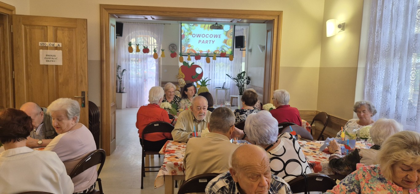 Owocowe Party pełne radości podczas którego seniorzy mogli sprawdzić swoją wiedzę w quizach i konkursach owocowych – były testy, ciekawostki oraz garść ważnych informacji o tym, dlaczego owoce to skarb dla zdrowia w każdym wieku! Nie zabrakło też pysznej sałatki owocowej z jogurtem, która zniknęła szybciej niż kiwi w konkursie na czas! Zwieńczeniem dnia była pełna energii zabawa taneczna, przy której nawet banany zaczęły się kiwać. Dziękujemy wszystkim uczestnikom za uśmiechy, entuzjazm i wspólną owocową energię!