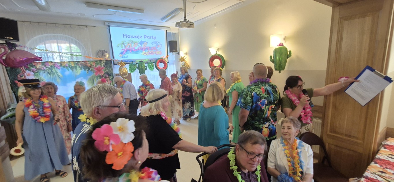 Aloha- seniorzy znaleźli się w samym sercu imprezy Hawaje Party i … co tu dużo mówić – było absolutnie fantastyczne! To wyjątkowe party było prawdziwą podróżą dookoła świata, w klimacie rajskich plaż i kolorowych kwiatów. Nie zabrakło ciekawych konkursów, hawajskiej energii i integracyjnych zabaw tanecznych.