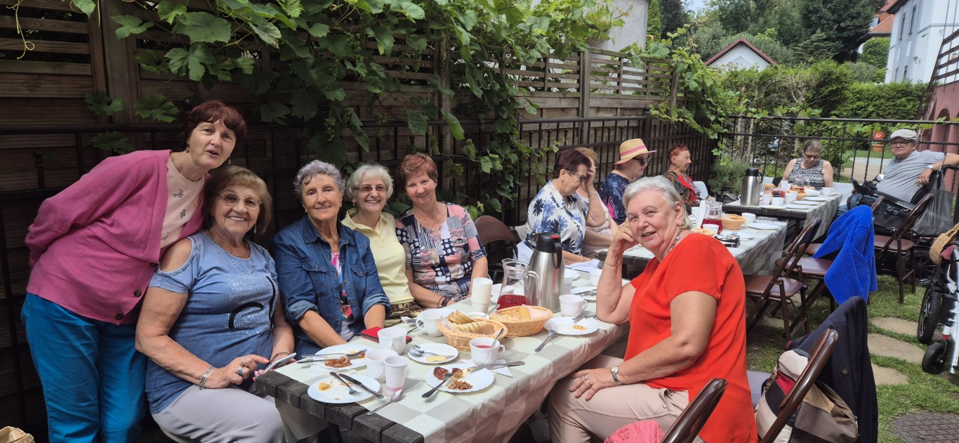 Tego lata pogoda bywa kapryśna, ale seniorzy nie tracą dobrego humoru. Ostatnią środę lipca wykorzystali słoneczną chwilę na spotkanie w przydomowym ogródku. Przy pieczonej kiełbasce