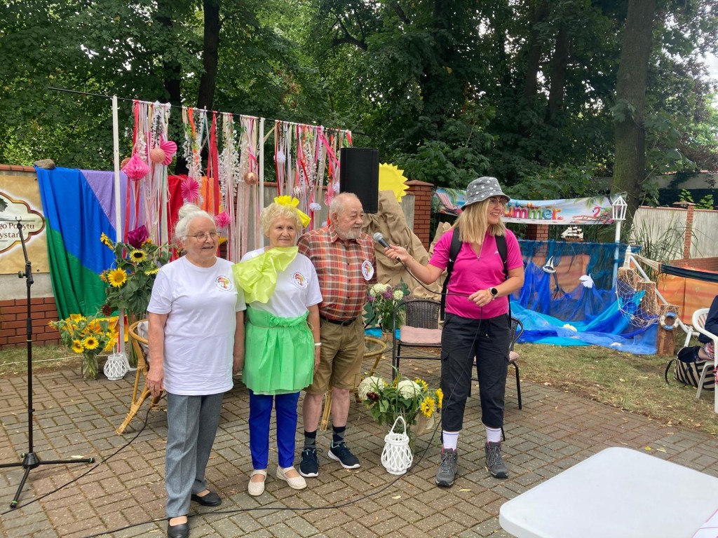 W Domu Dziennego Pobytu „Cicha Przystań” w Głogowie odbyło się spotkanie pod hasłem „Lato w rozmiarze XXL – Moja wymarzona podróż”, które zgromadziło seniorów z różnych placówek. Naszą dumnie reprezentowała zaangażowana i pełna pozytywnej energii delegacja. Spotkanie obfitowało w liczne atrakcje – jedną z nich był konkurs na przekąskę piknikową. Nasza drużyna zaprezentowała swoje kulinarne umiejętności, zdobywając uznanie zarówno jury, jak i publiczności. Nie zabrakło także wakacyjnych konkurencji – seniorzy bawili się doskonale, kolejny raz udowadniając, że dobra kondycja i pogoda ducha nie znają metryki. Wydarzenie odbyło się w serdecznej, sprzyjającej integracji atmosferze. Dziękujemy organizatorom za zaproszenie, a wszystkim uczestnikom za wspólnie spędzony czas!