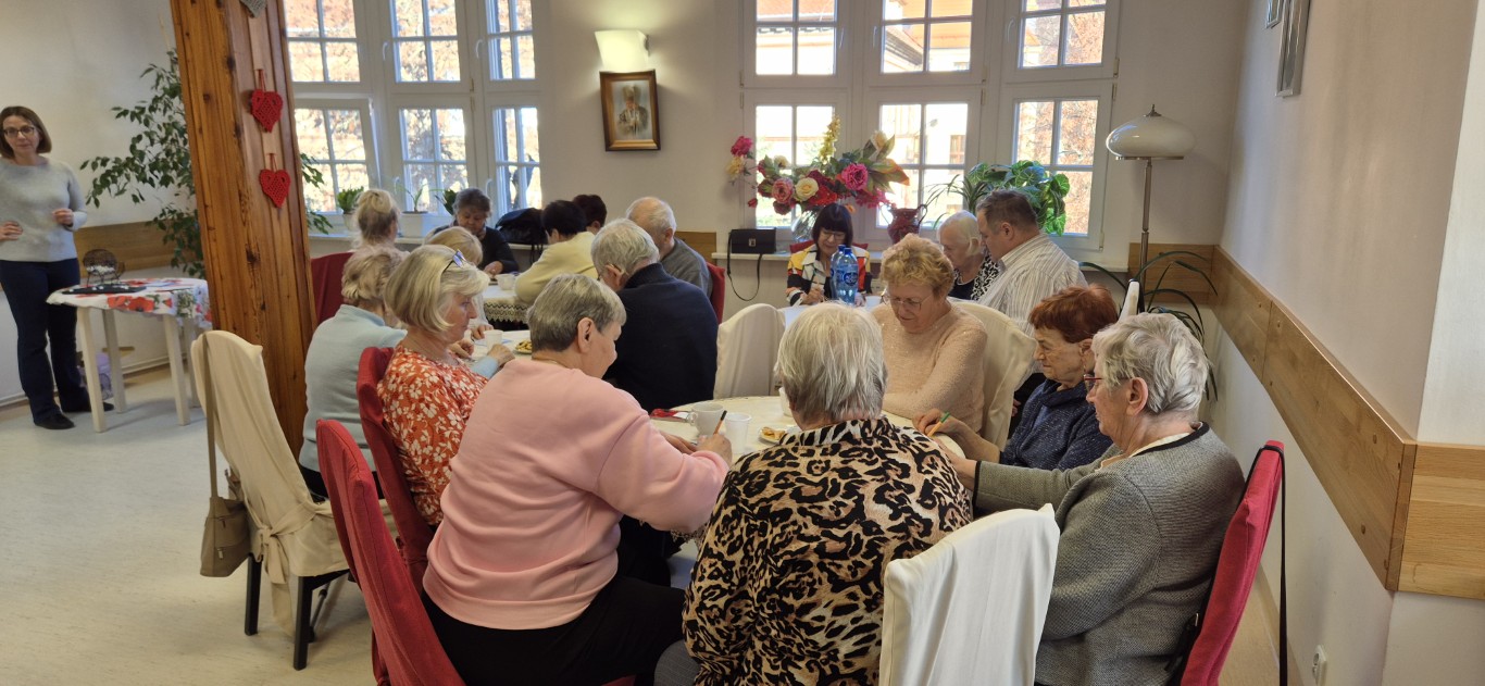 Naszą placówkę odwiedziły dzieci z Przedszkola „Planeta Zdrowia” z ulicy Kruczej, które przygotowały wyjątkowy program artystyczny o tematyce patriotycznej. Mali artyści z ogromnym zaangażowaniem zaprezentowali piosenki i tańce. Występ wywołał wiele wzruszeń i radości wśród naszych seniorów, którzy z wielkim entuzjazmem oklaskiwali milusińskich. Z okazji Dnia Seniora przedszkolaki złożyły również życzenia zdrowia i wielu pogodnych dni. Spotkanie przebiegło w niezwykle ciepłej, pełnej uśmiechu i wzajemnej życzliwości atmosferze. Seniorzy z wdzięcznością dziękowali za pamięć i zaangażowanie, a dzieci obiecały, że jeszcze nie raz nas odwiedzą. Serdecznie dziękujemy nauczycielom i opiekunom z Przedszkola „Planeta Zdrowia” za przygotowanie wspaniałego programu.