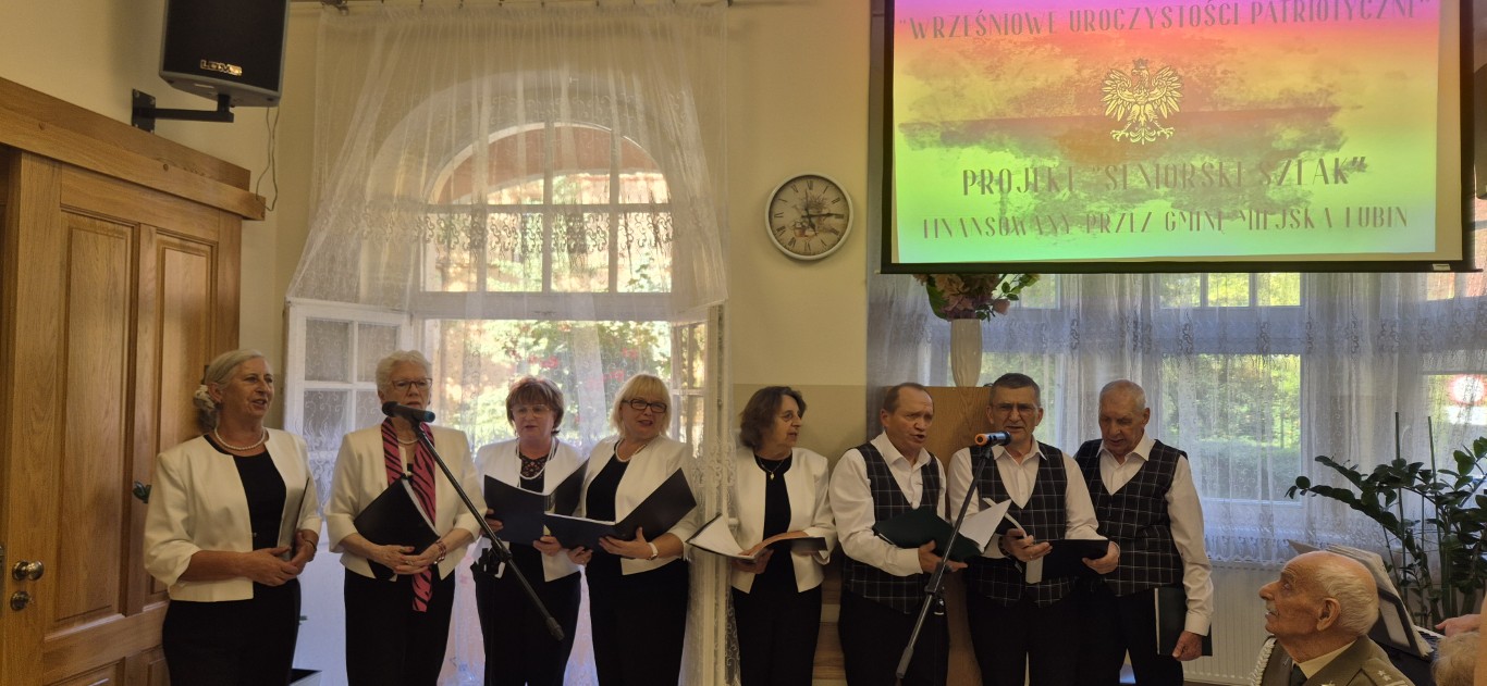 Z inicjatywy Stowarzyszenia Seniorów „Trzeci Wiek” w Lubinie, w ramach projektu „Seniorski Szlak” finansowanego przez Gminę Miejską Lubin, zorganizowaliśmy spotkanie pn. „Wrześniowe uroczystości patriotyczne”. O część artystyczną zadbał nasz zespół „Bez Nazwy” pod akompaniamentem Włodzimierza Kuby Danka. Seniorzy przygotowali również narracje i recytacje wierszy, które nadały spotkaniu wyjątkowego charakteru.