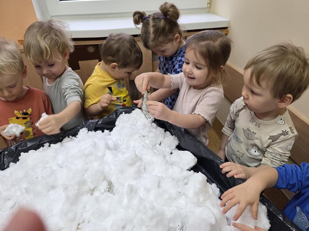 Nasze Krasnale zamieniły się w małych odkrywców i wspólnie wyruszyły na poszukiwania zagubionych w śniegu zwierzątek.