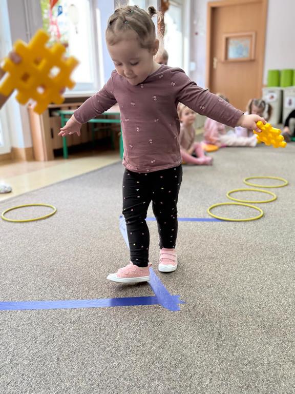 Taka forma aktywności zachęcała nasze dzieci do rozwijania swojej sprawności fizycznej oraz kontroli nad własnym ciałem.