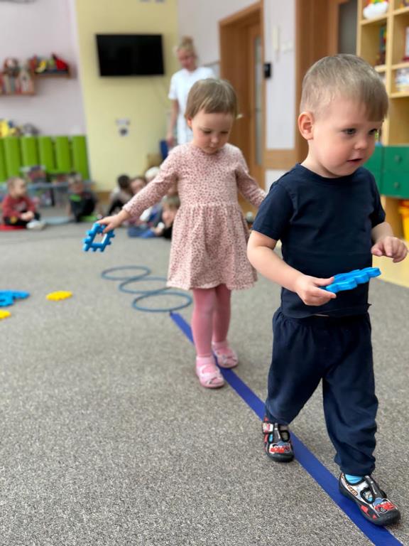 Podczas zajęć dzieci uczestniczyły w różnorodnych zabawach ruchowych wspierających rozwój zmysłu równowagi oraz koordynacji ruchowej.